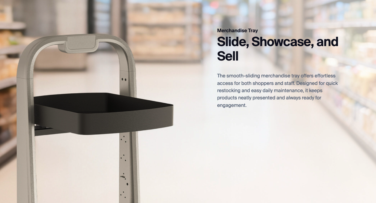 청소 로봇에 프로모션 디스플레이와 상품 트레이를 결합해