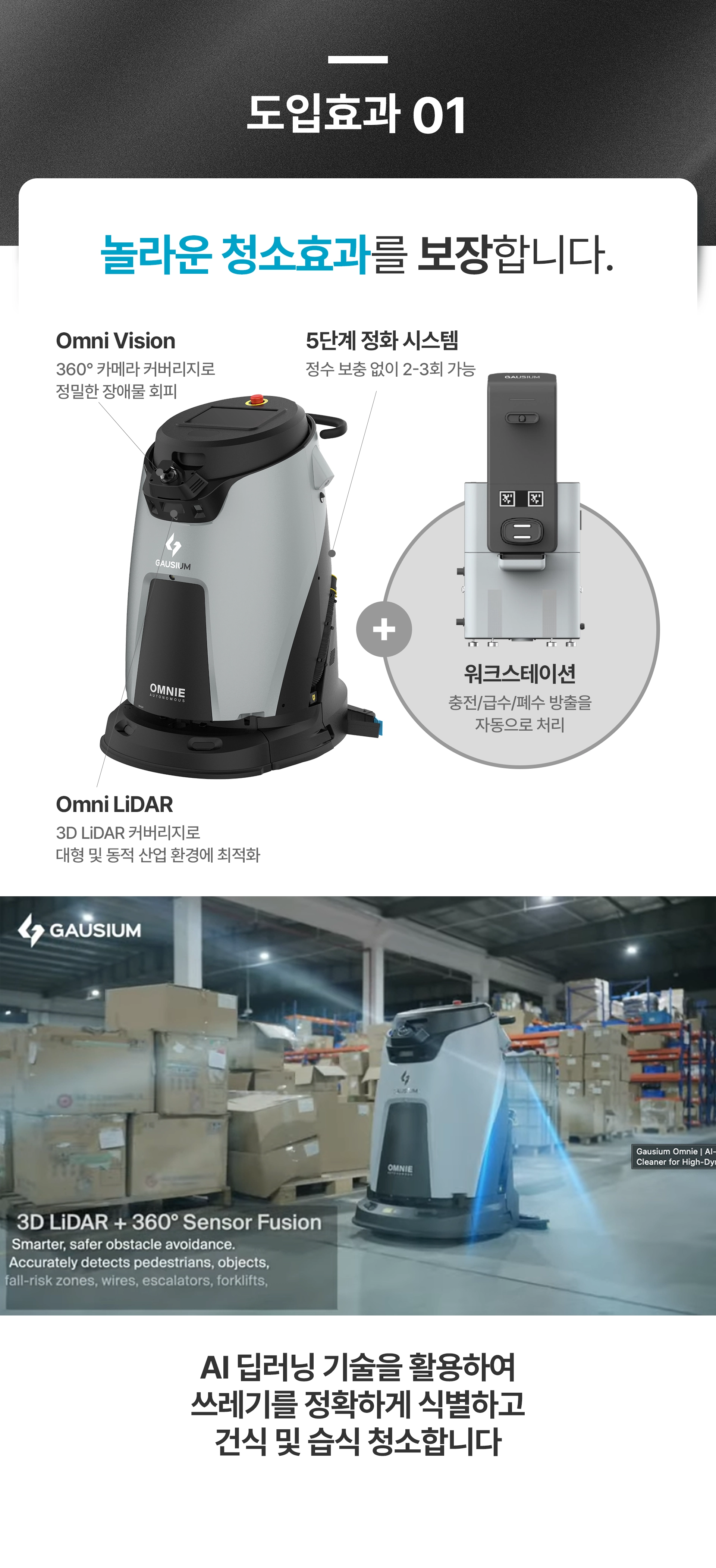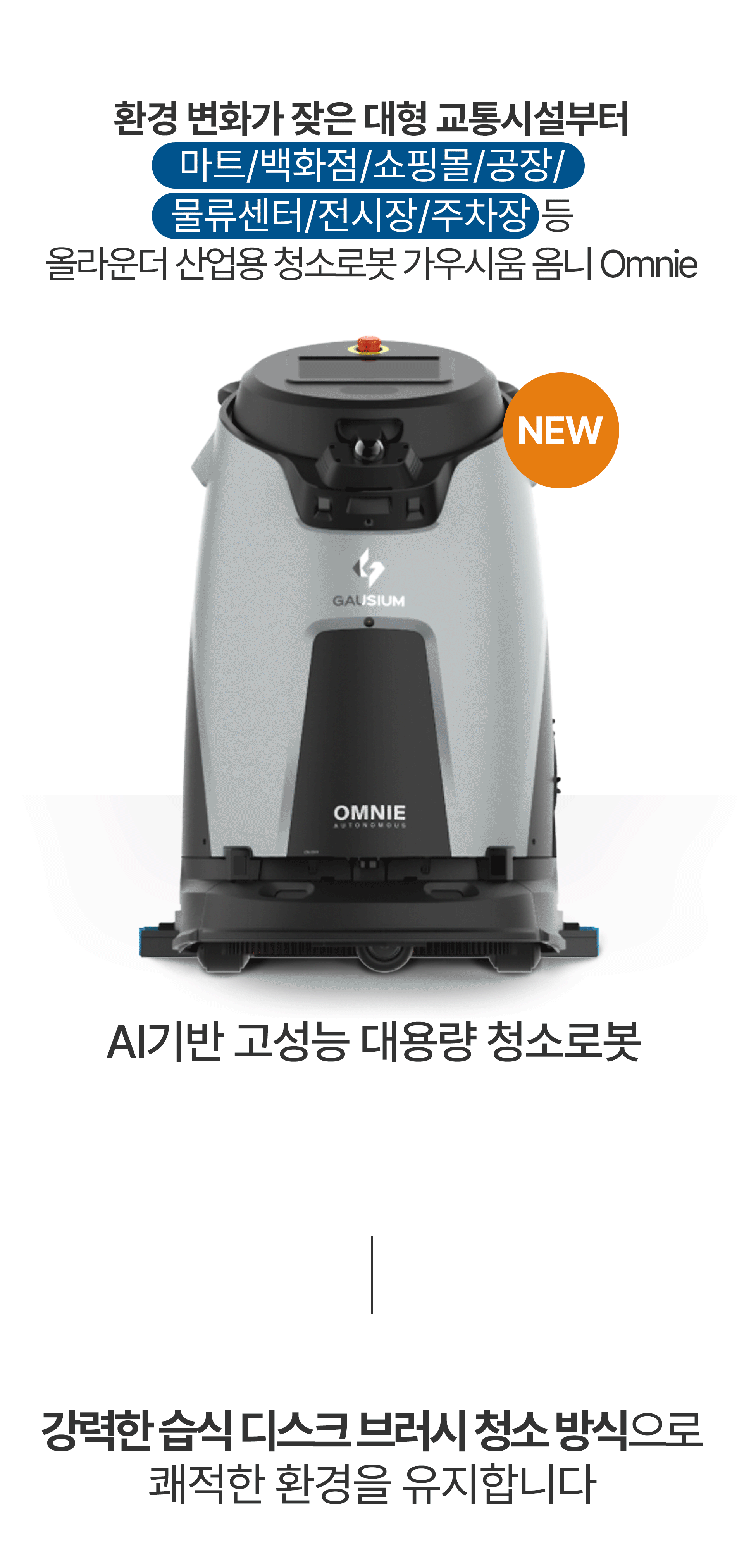 [신제품] 가우시움 AI 산업용 청소로봇 Omnie 옴니