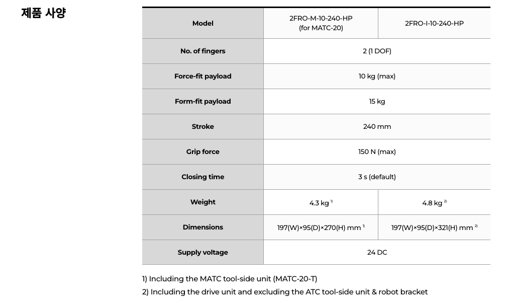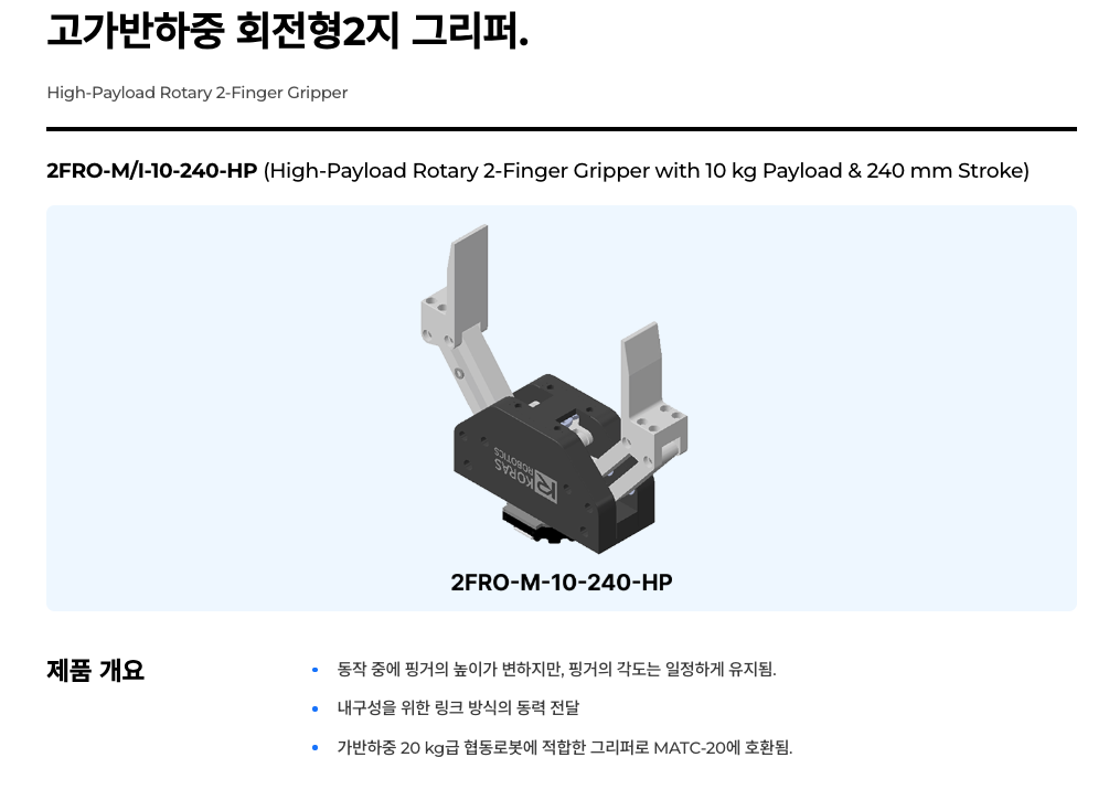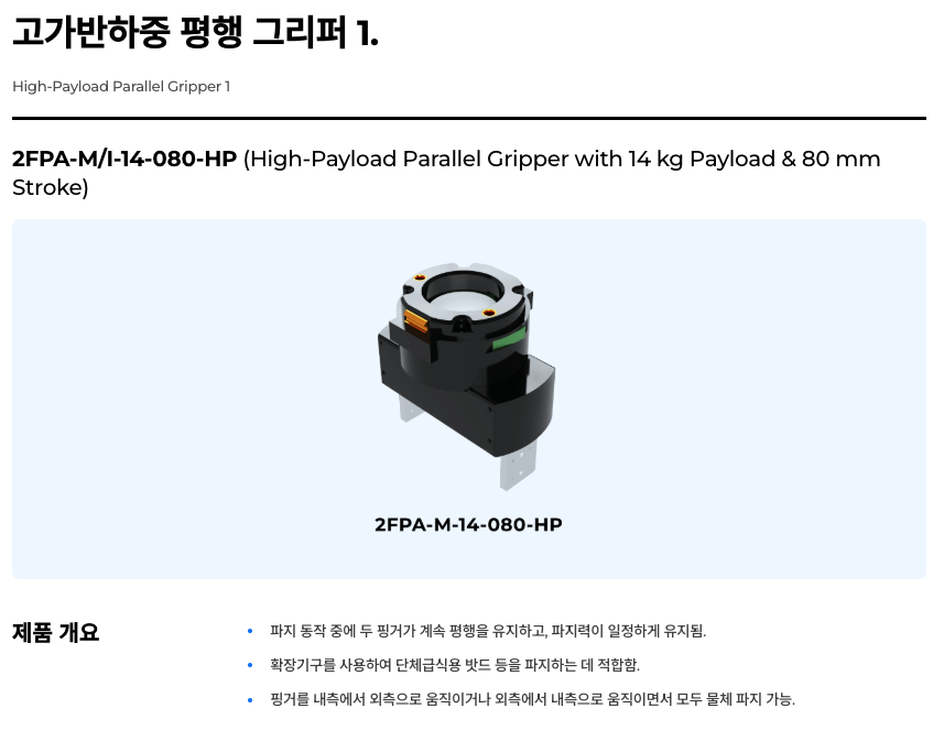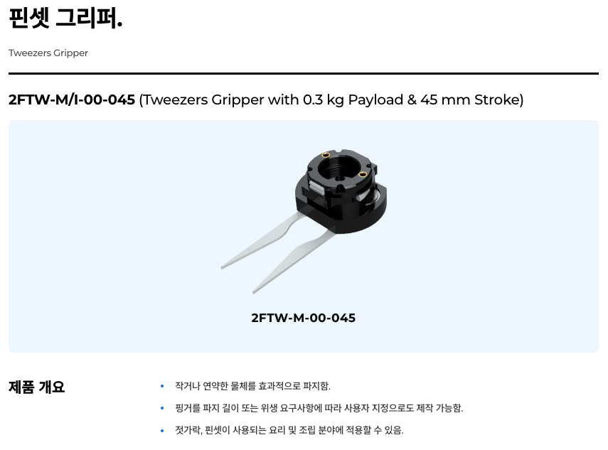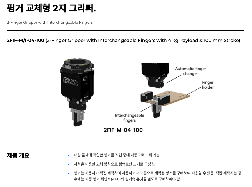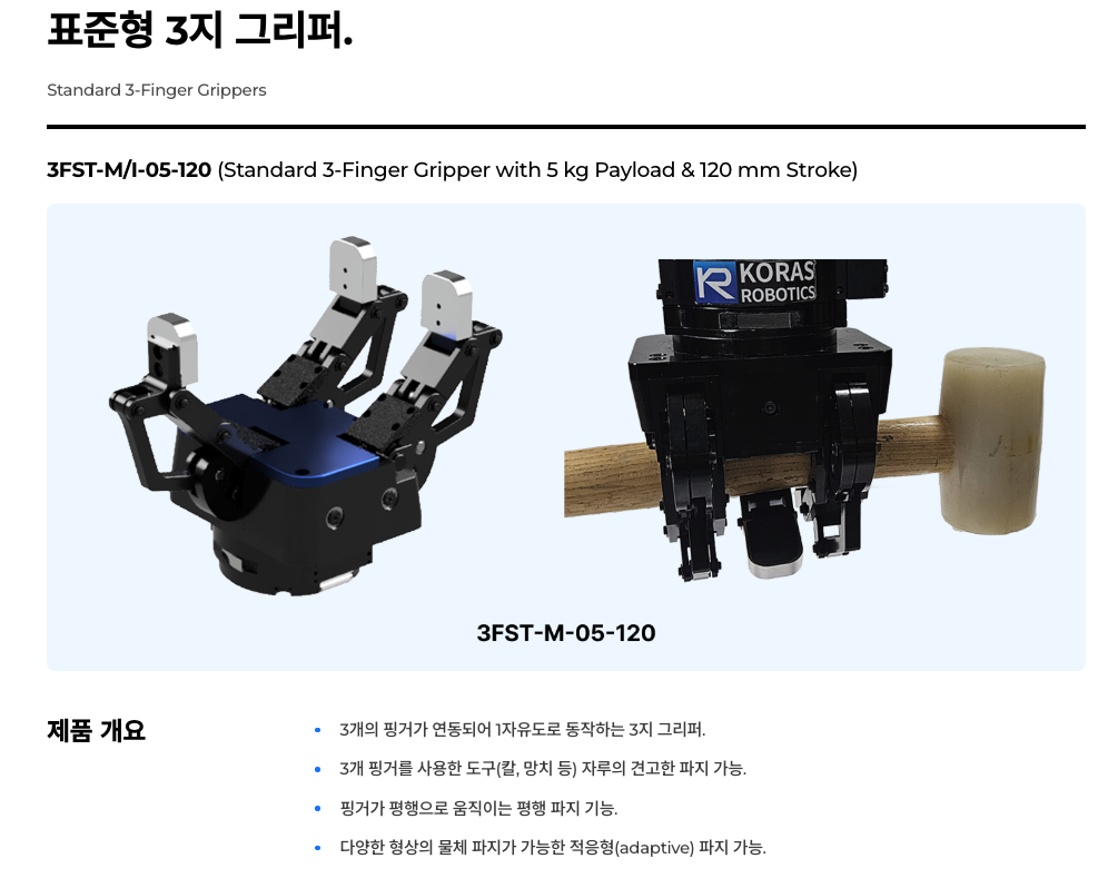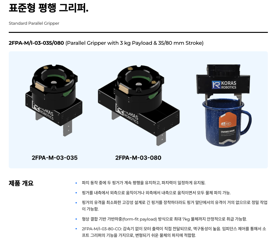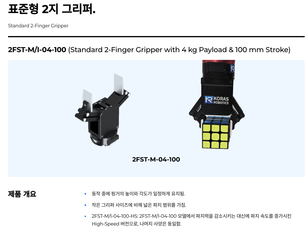 | 상품명(모델명) | 코라스로보틱스 로봇 그리퍼 & KR-RTS 툴링 시스템 (14종 옵션) | ||