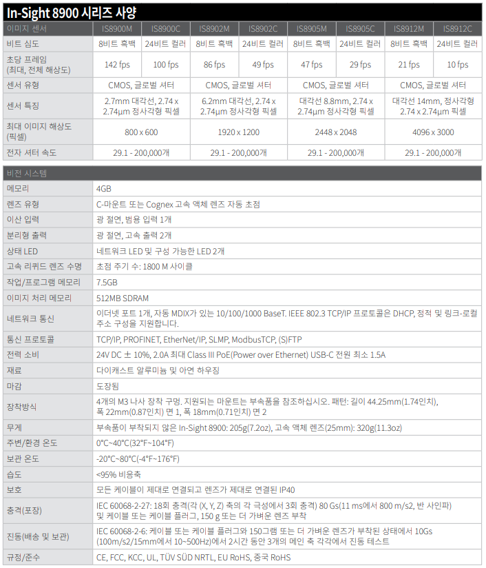 | 상품명(모델명) | COGNEX 코그넥스 2D 머신 비전 시스템 In-Sight 8900 (고사양) | ||