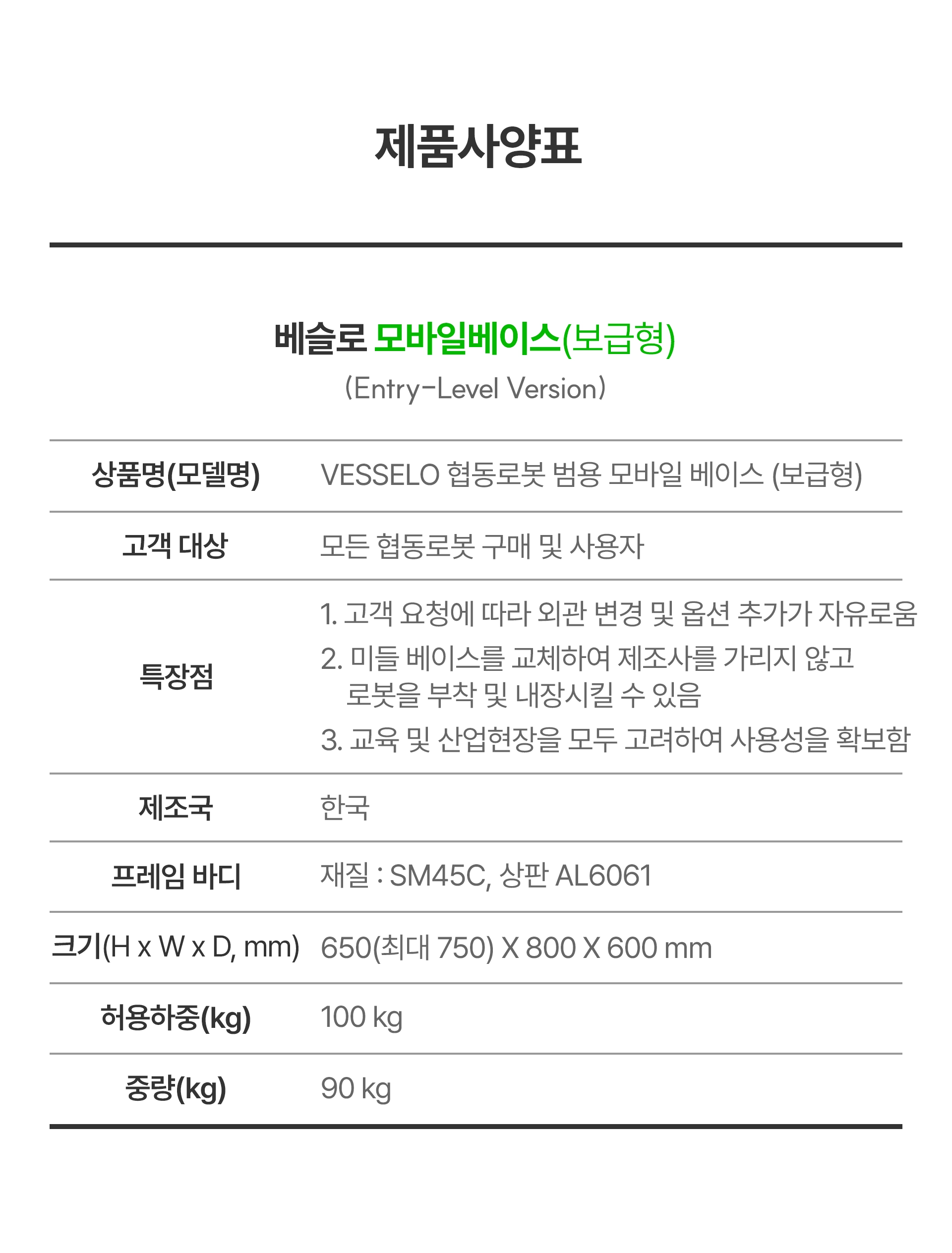 | 제품명(모델명) | VESSELO 모바일 베이스(보급형) | ||